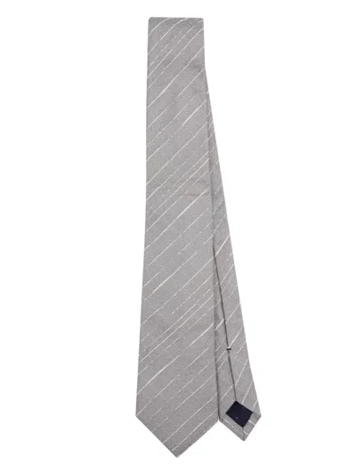 PAUL SMITH Men Stripe Crepe Tie Diagonal Loop In Silver