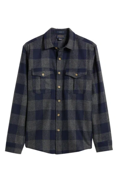 PENDLETON Scout Buffalo Check Wool Flannel Button-up Shirt In Oxford Mix/navy Buffalo Check