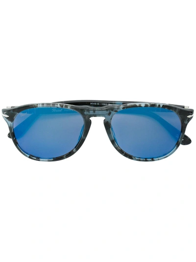 Tortoiseshell black and blue 9649S round frame sunglasses from Persol. This item is unisex. This item comes with a protective case.