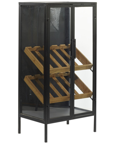 Color/Finish: Black Store Your Aged Bottles Safe And Sound While Beautifying Your Dining Room Or Cellar In Your Modern Style Inspired Home. This Item Ships In 1 Carton. Designed With 2 Wine Rack Drawers Mounted Inside The Cabinet Drawer. Suitable For Indoor Use Only. This Item Ships Fully Assembled In One Piece. Maximum Weight Limit Is 100 Lbs. This Is A Single Black Colored Floor Wine Rack. Modern Style. Black Standing Wine Rack Can Hold 10 Average Wine Bottles. Inspired By Sleek Elegance And Clean Lines, A Minimalistic Design Offers Effortless Luxury With Monochromatic Tones And Bold, Angular Structures. This Beautiful Wine Rack Cabinet Is Made From Durable Metal And Wood Materials. It Features A Black Finish On The Outer Cabinet And A Brown Hue On The Wooden Wine Rack Inside. This Wine Rack Features A Cabinet Design With Transparent Doors, 10 Wine Bottle Racks, And Glass Holders. Measures 20.5In X 14.63In X 40.38In Metal Natural Or Dyed Animal Products Sourced From China Wipe Clean With A Dry Cloth Assembly Required Imported