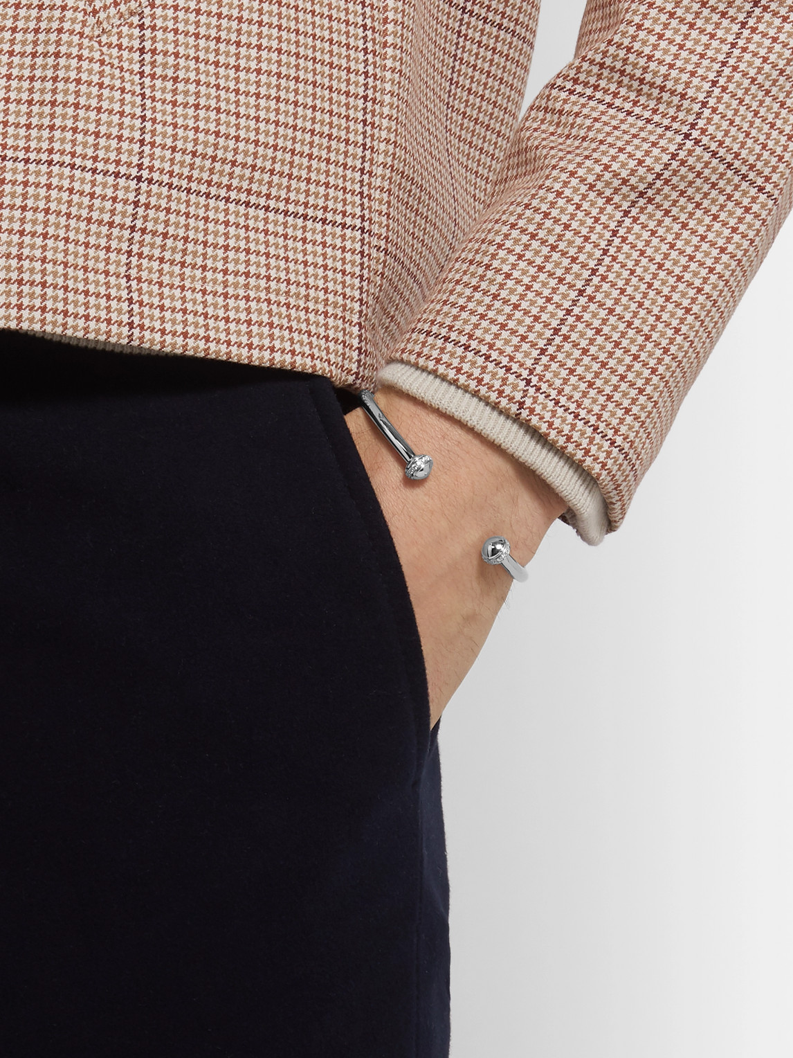 A real investment piece, Piaget's cuff is cast from gleaming 18-karat white gold and fitted with diamond-encrusted rotating bands, the signature detail from the 'Possession' collection that symbolises the wheels of destiny in motion. The clever twist design ensures it's easy to slip on and off.