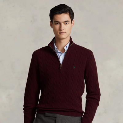POLO RALPH LAUREN Cable-knit Wool-cashmere Sweater In Aged Wine Heather