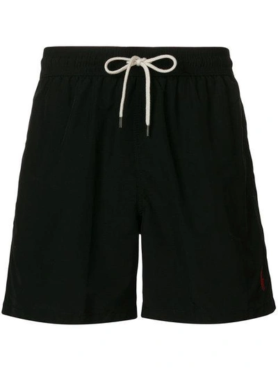 These black swimming shorts are a must-have item to add to your vacation essentials. Enriched by Polo Ralph Lauren's iconic contrasting logo embroidered to the leg, these shorts are designed with an elasticated drawstring waist for comfort. They feature seam pockets, a flapped pocket at the back and mesh lining.