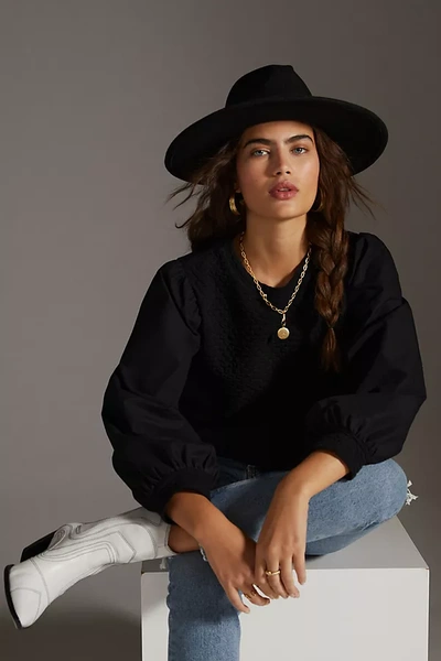 Cotton, polyester Textured fabric body Woven-fabric sleeves Pullover styling Machine wash Imported Textured Sweatshirt by Porridge in Black, Women's, Size: XL, Polyester/Cotton at Anthropologie
