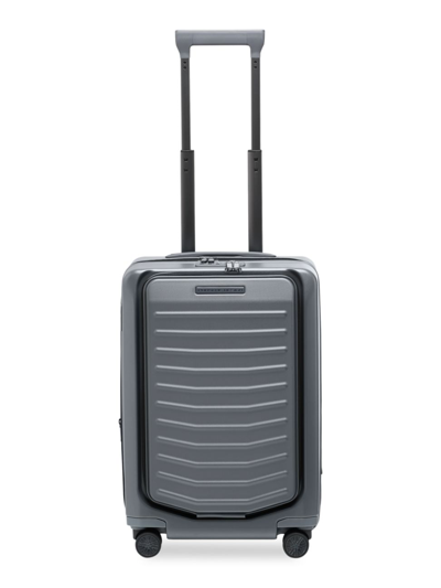 From the Roadster Hardcase Collection. This 21" Expandable Spinner is made from lightweight polycarbonate, flexible and resistant, integrating being indestructible as well as functional benefits like a USB connection. Meets TSA carry-on requirements Ultralight D section multi-step aluminum pull-handle system with ergonomic comfort-grip handle Top zip closure TSA lock External pocket with organizational compartments and pockets USB & Type C battery connection Side handle Four Japanese engineered ball-bearing double spinner wheels Double deck interior with organizational pockets Interior elastic security straps Inside zip compartment Gunmetal hardware Polyester lining Leather trim Polycarbonate/polypropylene/leather Imported SPECIFICATIONS 3.9kg Handle drop, up to 20" 15"W x 21"H x 9-10.5"D Please check with your airline before you travel as airline specifications can vary. Men Accessories - Travel Goods > Porsche Design > Saks Fifth Avenue > Barneys. Porsche Design. Color: Matte Anth.