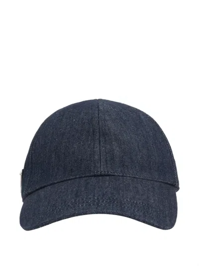 PRADA Denim Cap Baseball Curved Brim In Blue