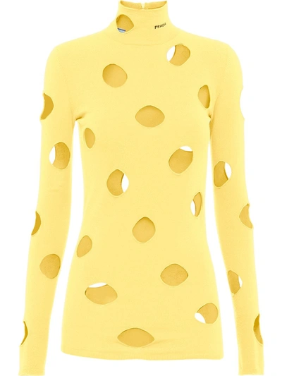 PRADA Openwork High Neck Viscose Sweater In Yellow