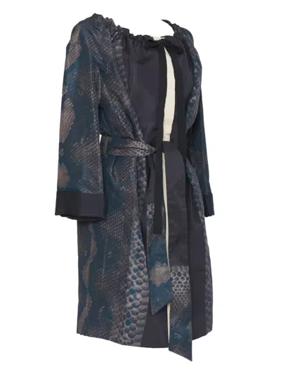 Pre-owned Python Print-overcoat In Blue