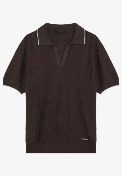 PRADA Short-sleeved Polo In Brown Silk Blend