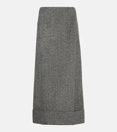 grey wool twill weave A-line turn-up hem high-rise concealed side hook and zip fastening ankle-length straight hem Composition: Wool, 100%