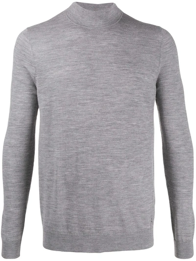 Flannel grey merino wool mock neck fine knit jumper from Pringle Of Scotland featuring a lightweight construction, long sleeves and a straight hem.