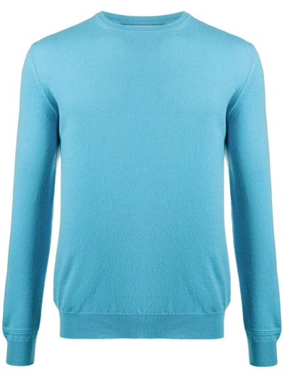 Pool blue relaxed-fit cashmere jumper from Pringle Of Scotland featuring a ribbed crew neck, long sleeves, a ribbed hem and cuffs and a straight hem.