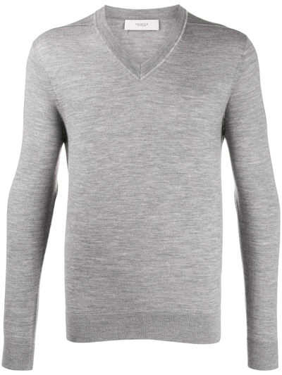 PRINGLE OF SCOTLAND V-neck Merino Wool Jumper In Grey