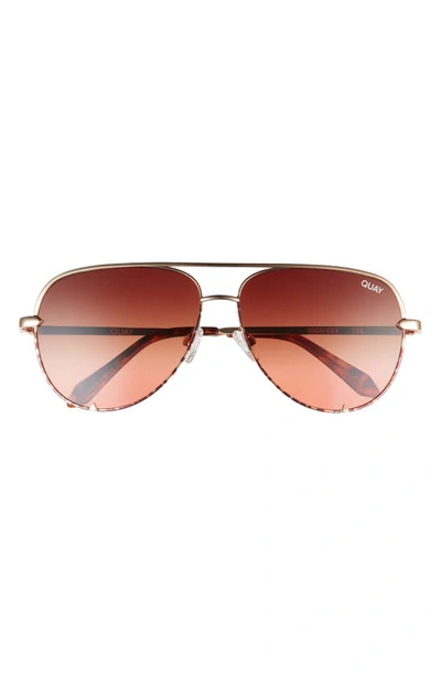 QUAY High Key 55mm Aviator Glasses In Gold / Brown To Maroon