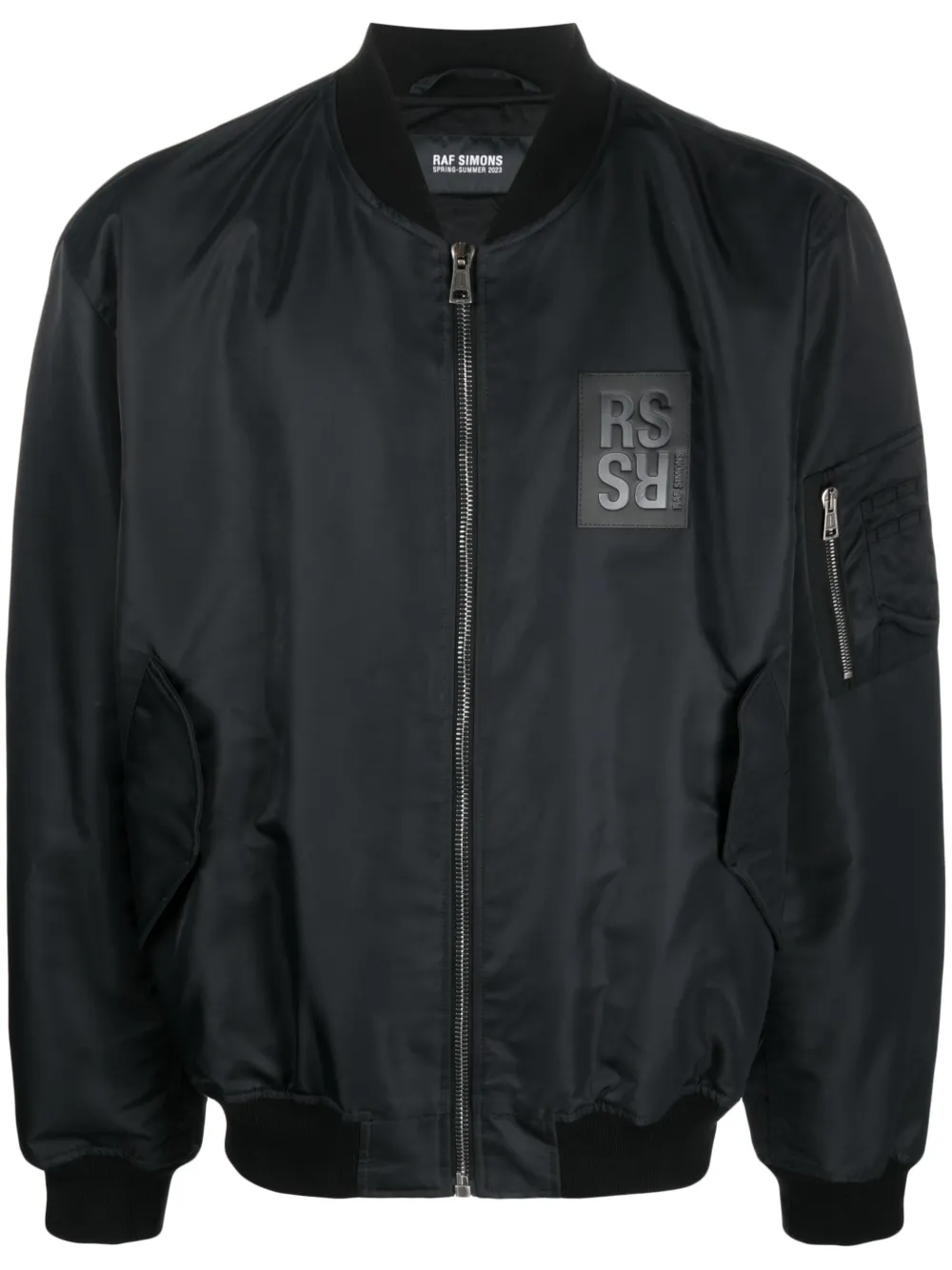 RAF SIMONS Black Logo Patch Bomber Jacket