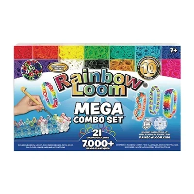 The MEGA Combo rubber band set from Rainbow Loom is the perfect craft to keep your kids busy for hours! This kit includes 7,000 bands, 300 Colored C-Clips, a carrying case and 12 gift bags. The carrying case makes it easy to organize materials and bring them with you on the go. These high quality latex-free rubber bands with great elasticity are the original rubber band bracelets first ever made by multiple TOTY award winning Choon's Design the creator of Rainbow Loom. Recommended for ages 7 and up.Learning Skill: Motor SkillsRecommended Ages: 7 Years And UpMeasurements: 2 Length/InchesCountry of Origin: Imported