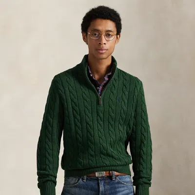RALPH LAUREN Cable-knit Cotton Quarter-zip Sweater In Green