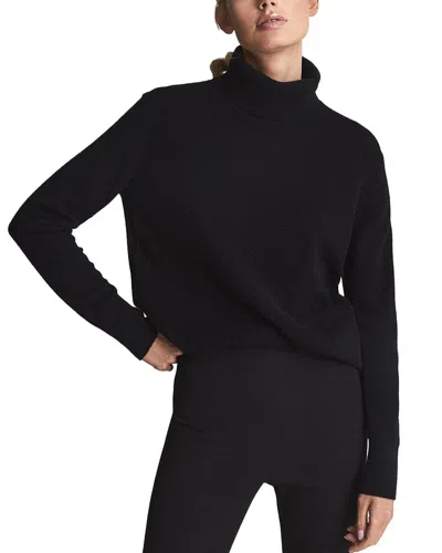 REISS Black Fitted Cashmere Roll Neck Top