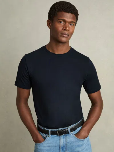 REISS Navy Cotton Crew Neck T-shirt In Blue