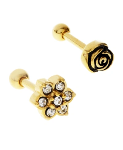 RHONA SUTTON Bodifine Stainless Steel Set Of 2 Flower Tragus In Gold