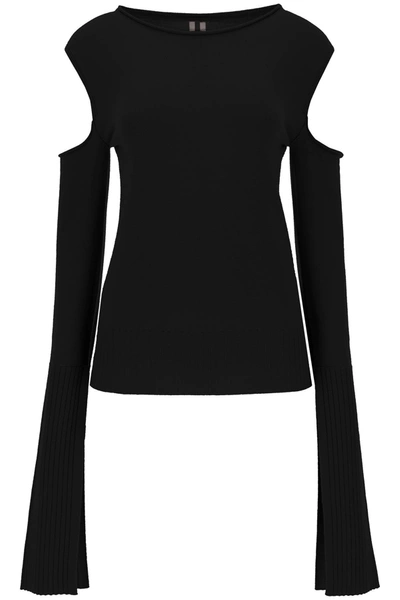 RICK OWENS Long Sleeve Wool Knit Top W/cutouts In Black