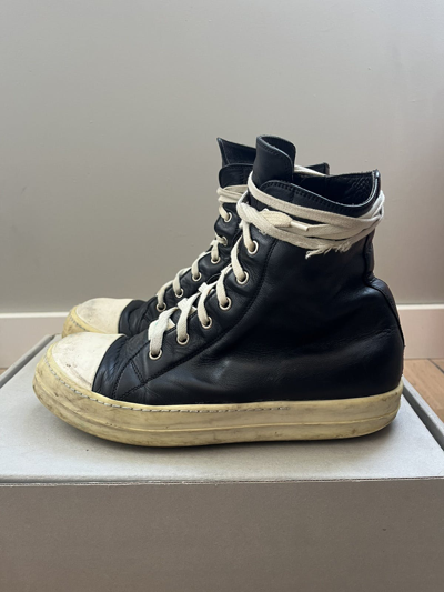 Rick Owens Mainline Leather High Top Ramones Size Eu 41 Beautiful Rick Owens Leather High Top Ramones In A Size 41. In Great Condition, Please Refer To The Pictures. Made In Italy. Comes With An Extra Pair Of Original Black Laces. And Og Box. Eu & Us Will Be Shipped With Ups Expedited Which Usually Takes About 2-4 Working Days To Arrive. Orders Over $500 Will Always Be Shipped With Ups. Everywhere Else Will Be Shipped Using Postnl Priority Service Which Takes 7 To 10 Working Days To Arrive. If You Have Any Questions Please Let Me Know, I Will Answer Them Asap! Please Check Out My Other Items And Be Sure To Follow My Page, New Items Are Added Almost Daily! Thank You So Much! | Rick Owens Mainline Leather High Top Ramones Shoes in Black, Men's (Size 8)