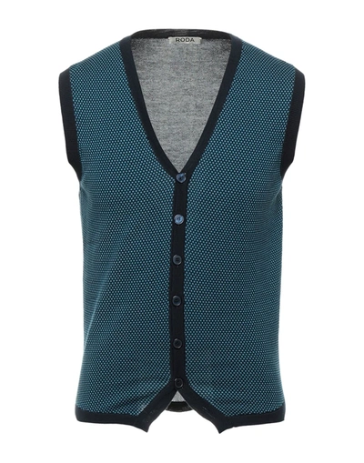 RODA Cardigans. knitted, no appliqués, lightweight knit, v-neck, two-tone, sleeveless, button closing, no pockets, small sized. 100% Cotton