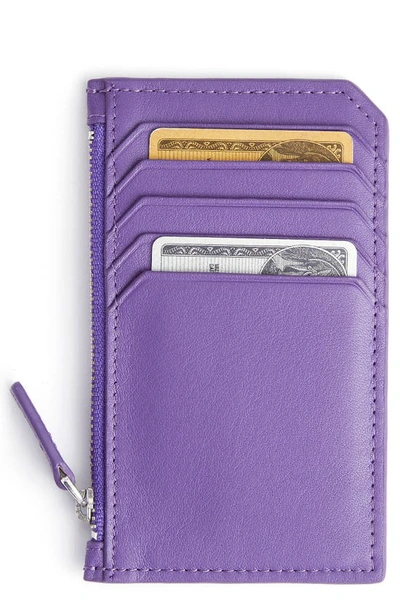ROYCE NEW YORK Zip Leather Card Case In Purple