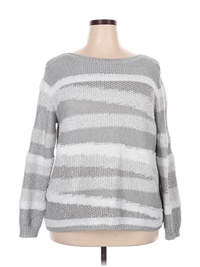 Ruby Rd. Pullover Sweater, Size: 2X. Item Details: Gray, Stripes Pattern, Boatneck, Long Sleeve, Women's Tops, Acrylic/Polyester/Metallic