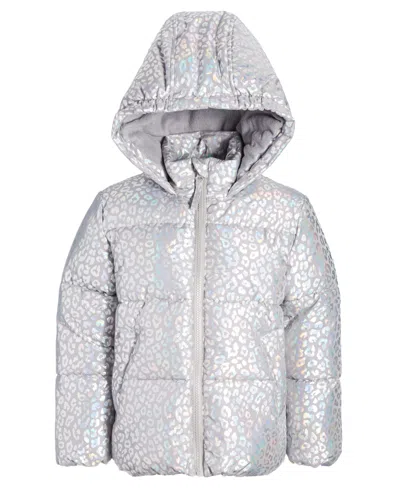 S ROTHSCHILD & CO Kids' Big Girls Quilted Metallic Heart-print Full-zip Hooded Puffer Jacket In Grey Leopa