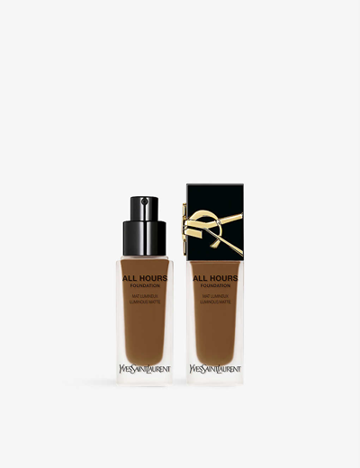 Parisian label Yves Saint Laurent introduces the improved All Hours foundation. Building on the success of the former, it boasts a more breathable formula that's designed to feel weightless on your skin while balancing and smoothing your complexion. Oh, and did we mention that it's also infused with hyaluronic acid? That means your skin is plumped and pumped with hydration throughout the day, too.Yves Saint Laurent All Hours foundationApplication: Glide All Hours foundation from the centre of the face outwards to unify the complexion. Using a dabbing gesture, build up coverage where needed.Skin type: Suitable for all skin types25mlFor hygiene reasons, this product cannot be exchanged or refunded, unless faulty.