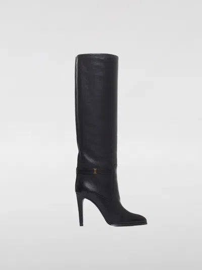 SAINT LAURENT Diane Buckled Glossed-leather Knee Boots In Black
