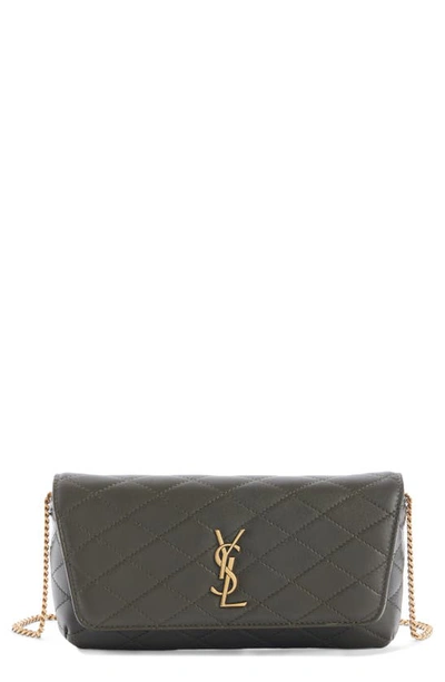 SAINT LAURENT Gaby Quilted Leather Crossbody Phone Pouch In Green