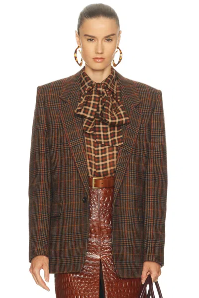 SAINT LAURENT Wool Check Single-breasted Jacket With Notched Collar In Brown