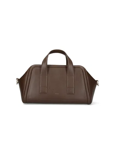 Salce 'Alene' large brown leather bag with two handles, adjustable and removable fabric shoulder strap, front printed logo, zip closure, main inner compartment, inner zip pocket, gold hardware. - Lining: 100% cotton
