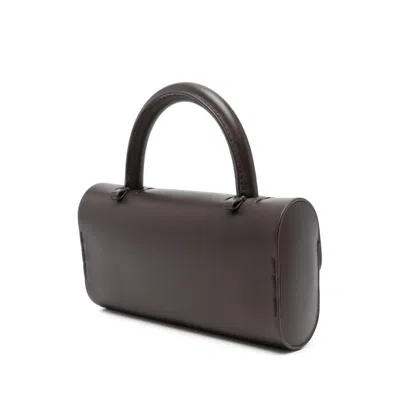 brown cylindrical shape top handle detachable shoulder strap foldover top with magnetic fastening main compartment. Colour. : Brown. Composition. : Outer Composition Calf Leather: 100.0%. Country Of Manufacture. : Italy. Dimensions. : depth: 4.0 centimetres, handle: 7.0 centimetres, height: 8.0 centimetres, width: 19.0 centimetres. MPN. : S197PITOTNMEDCHOCO. .