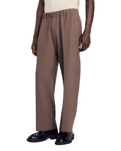 SANDRO Jersey Regular Fit Wide Leg Trousers In Taupe