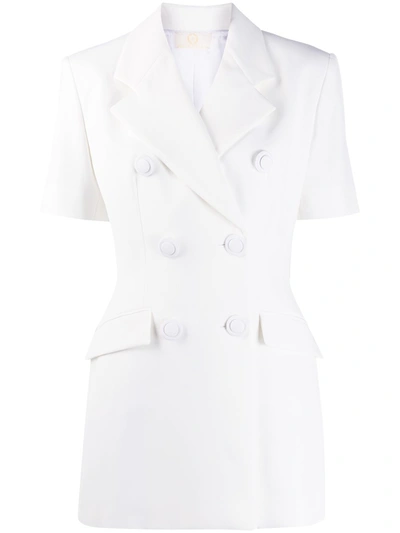 White Smart double breasted short-sleeved jacket from Sara Battaglia featuring notched lapels, short sleeves, front flap pockets, a double breasted front fastening and a satin lining.
