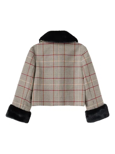 SELF-PORTRAIT Kids' Girls Check Fur Jacket In Black