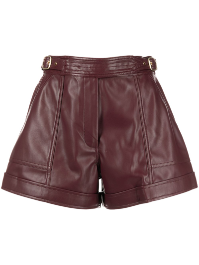 JONATHAN SIMKHAI Chace Vegan Leather Short in Merlot - Wine. Size 8 (also in 0, 2, 4, 6). 100% polyester with polyurethane coating. Made in China. Dry clean only. Zip fly with hook and bar closure. Adjustable belt with buckle closures. 4-pocket design. Cuffed hem. JSIM-WF24. 422-4006-V. About the designer: New York born and raised designer, Jonathan Simkhai started his fashion fascination at the early age of 14 where he built his buying skills working at a local retail clothing store. He took his love for the industry and went on to attend Parsons and FIT. His self titled women's collection debuted in 2010 showcasing the cross between genders. Jonathan's design aesthetic is menswear-inspired pieces incorporated into feminine silhouettes that remain classic and sophisticated for the modern, cosmopolitan woman.