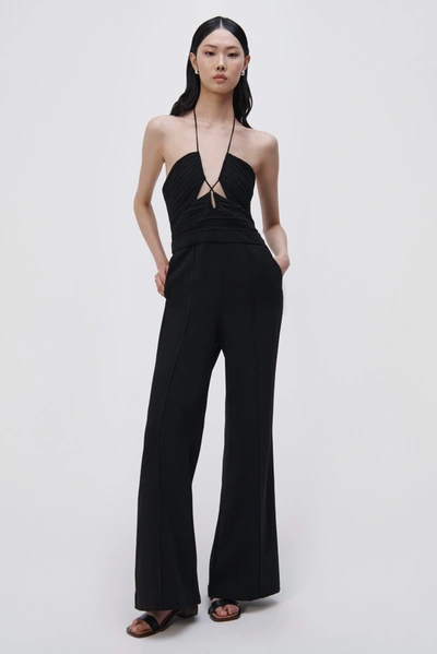 SIMKHAI Gala Plissé Cutout Wide-leg Halter Jumpsuit In Black
