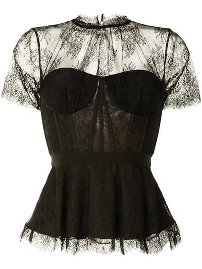 SIMKHAI Kehlani Grosgrain-trimmed Lace Bustier Top In Black