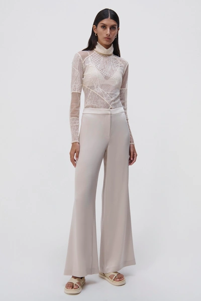 SPRING 2023 READY-TO-WEAR. The Naara Pant in Natural. Classic seamed trouser woven for a smooth sheen. High banded waist, straight leg silhouette.