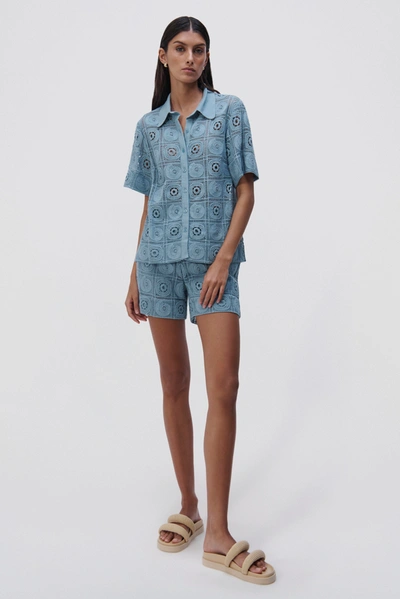 SIMKHAI Radia Crochet Coverup Short In Celeste Blue