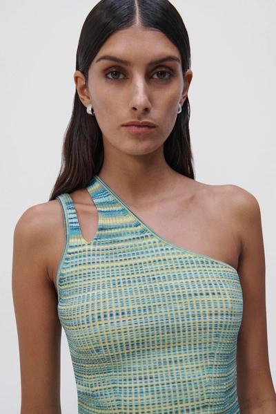 SPRING 2023 READY-TO-WEAR. The Selby Space Dye Tank in Baltic Blue Space Dye. Sculpted one-shoulder silhouette nuanced with an unexpected abstract cutout. Engineered from our signature compact rib knit.