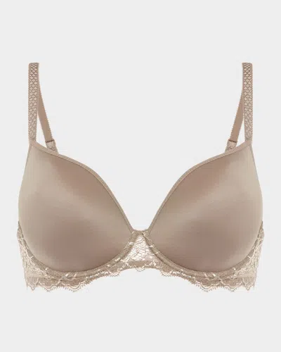 Simone Perele "Caresse" plunge bra. Seamless 3D spacer fabric feels like second skin and doesn't add volume. Lightweight molded Tshirt cups with natural, rounded shape. Aloe verainfused lace lies softly against skin. Adjustable shoulder straps. Hookeye back closure. Polyester/nylon/spandex. Imported. Size Note: Item runs large, consider ordering a size down. Model height: 5'10"/177cm.Fit tips: Bra cups runs deep; recommend sizing down one cup size (example: 32F order 32E, 34G order 34F, 36D order 36C). Band runs true to size.