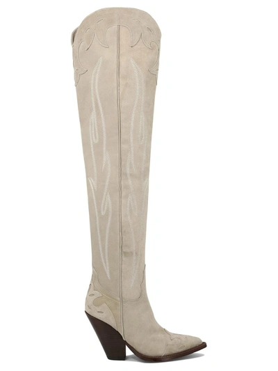 PULL-ON;LEATHER SOLE;POINTED TOE;COWBOY DESIGN;BLOCK HEEL;HEEL HEIGHT: 9 CM | Sonora Women's "melrose" Boots in Beige | Size 40 | MEL90BTASUEOT06WMELROSE