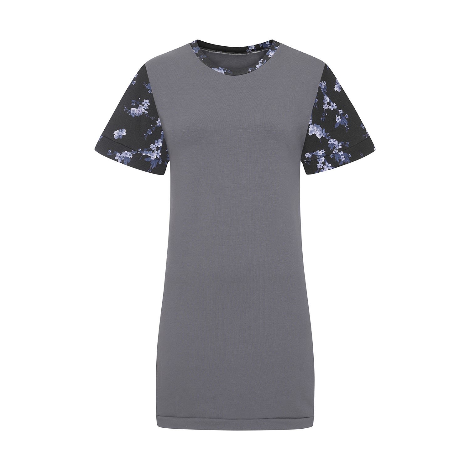 CORRIE - the relaxed T-shirt dress is the ultimate everyday essential. Dress up or dress down this 100% super soft loose fitting cotton dress features bespoke digital floral print sleeves. Pair with leggings for a casual yet chic all black ensemble. This versatile piece can be worn as a top or dress due to its flattering shape and just above knee length hem. 100% Cotton Machine washable at 30 degrees Do not tumble dry Iron on a low setting