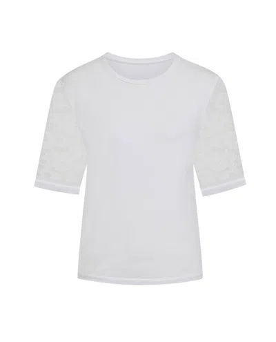SOPHIE CAMERON DAVIES Women's White Ivory Lace Sleeve Cotton T-shirt