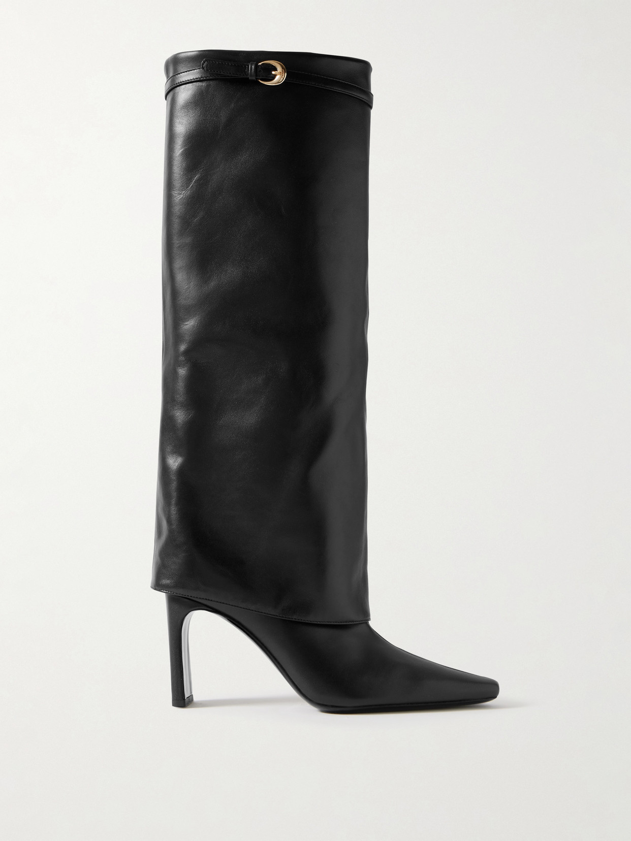 STAUD Black Wally Foldover High Heel Tall Boots In Blk Black